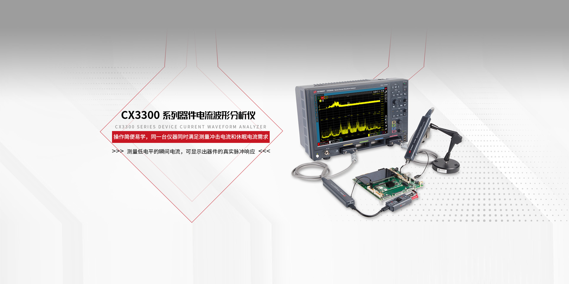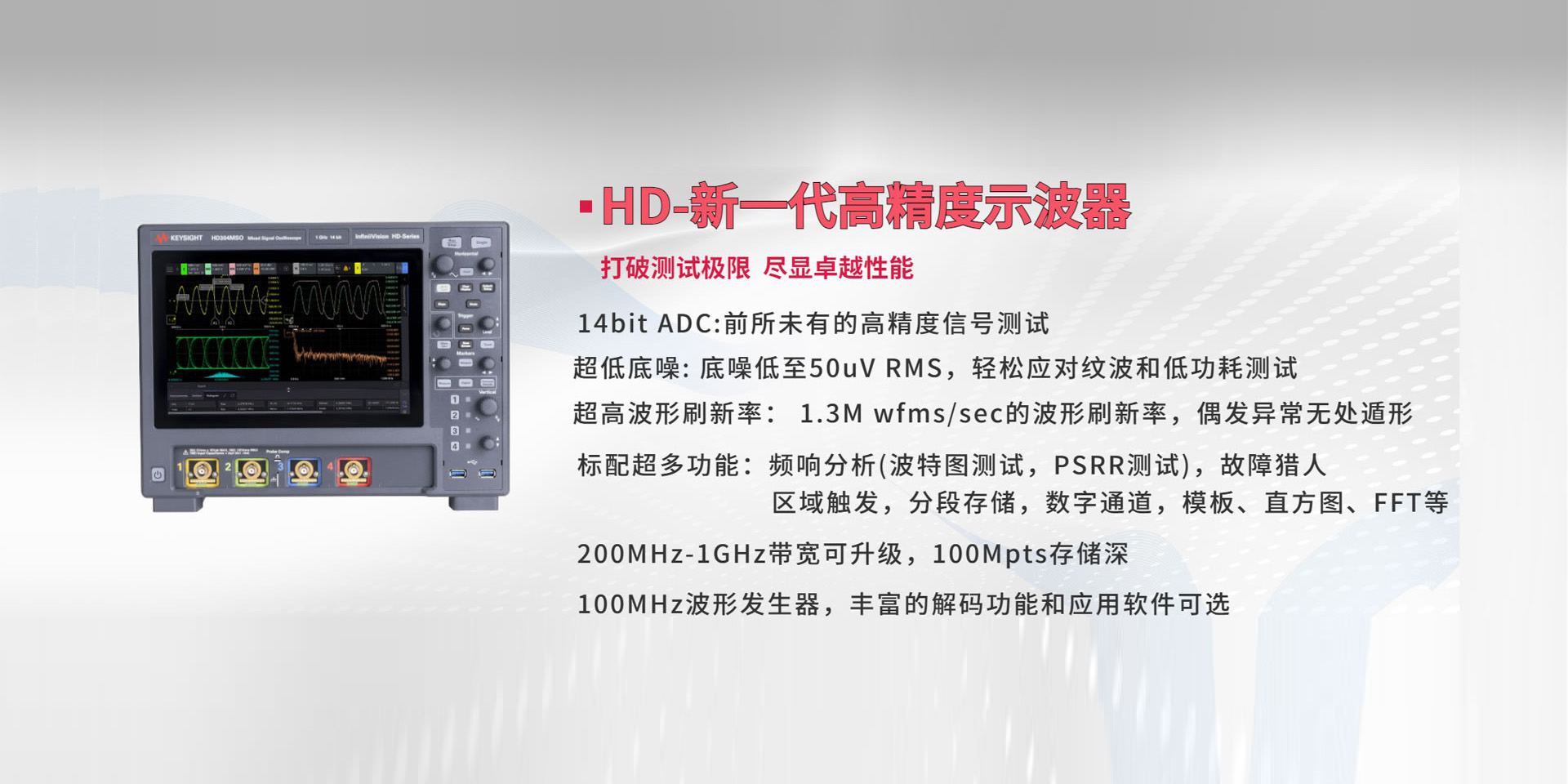 示波器 電源 萬用表 信號源 數據采集儀及模塊 頻譜分析儀 網絡分析儀 音頻分析儀 波形發生器 LCR表 便攜式射頻分析儀 電流波形分析儀 功率計 頻率計數器 探頭 USB產品